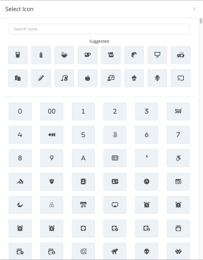 Add/Amend Icons to your room resources by clicking in the box within the field Icon. Here you can search a key word to bring up relevant Icons or browse through the list. There are many to choose from.